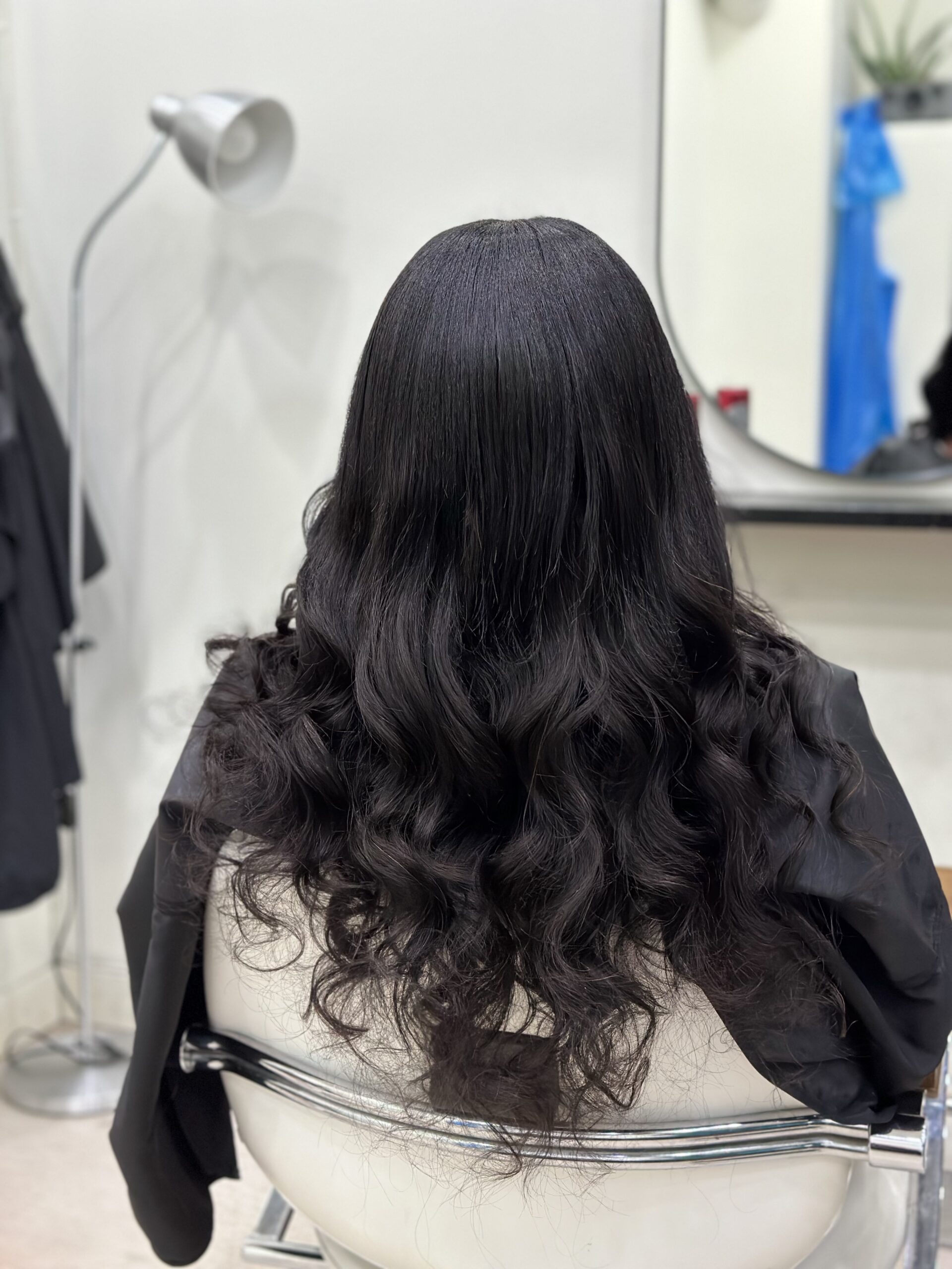 Hårförlängning | WeaveWe offer premium sew in services using the weaving method. This service is a process where a tiny cornrow is braided down close to your scalp and then a thread is used to sew down hair extensions on the braids. A very safe and traditional way of sew- in hair weft. It is considered the best and most protective hair extension method if you want to achieve more volume and length giving you a more gorgeous look. We offer different methods that work for your hair type. Sew in works for all hair types.